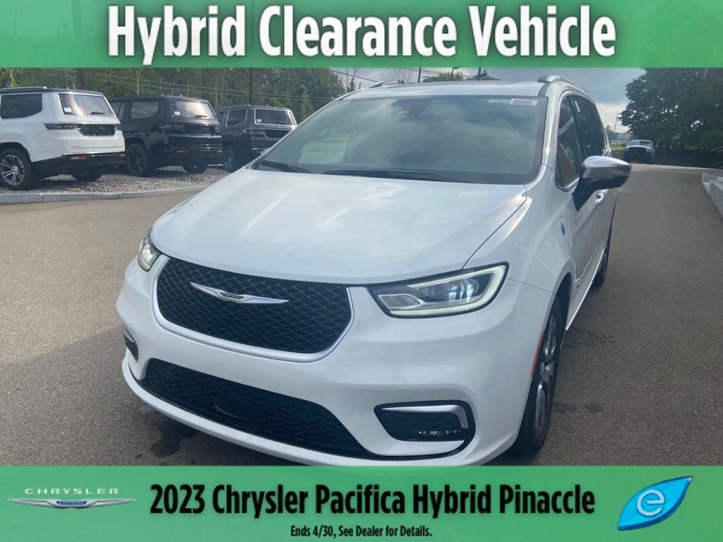 Bright White Clearcoat 2023 Chrysler Pacifica Hybrid Pinnacle FWD CVT 3.6L V6 3.6L V6, 20 Speakers, 3.59 Axle Ratio, 3rd row seats: split-bench, 4-Wheel Disc Brakes, A/V remote, ABS brakes, Air Conditioning, Alloy wheels, AM/FM radio: SiriusXM 360L, Apple CarPlay/Android Auto, Audio memory, Auto-dimming door mirrors, Auto-dimming Rear-View mirror, Automatic temperature control, Bluetooth, Bodyside moldings, Brake assist, Bumpers: body-color, Caramel Seats, Compass, Delay-off headlights, Driver door bin, Driver vanity mirror, Driver's Seat Mounted Armrest, Dual front impact airbags, Dual front side impact airbags, Electronic Stability Control, Emergency communication system: Uconnect Access, Exterior Parking Camera Rear, Four wheel independent suspension, Front anti-roll bar, Front Bucket Seats, Front dual zone A/C, Front fog lights, Front reading lights, Fully automatic headlights, Garage door transmitter, harman/kardon® Speakers, Heated door mirrors, Heated front seats, Heated steering wheel, Heavy Duty Suspension, Illuminated entry, Knee airbag, Low tire pressure warning, Memory seat, Navigation System, Occupant sensing airbag, Outside temperature display, Overhead airbag, Overhead console, Panic alarm, Passenger door bin, Passenger seat mounted armrest, Passenger vanity mirror, Power door mirrors, Power driver seat, Power Liftgate, Power moonroof, Power passenger seat, Power steering, Power windows, Premium Leather Trimmed Bucket Seats, Quick Order Package 2ES, Radio data system, Radio: Uconnect 5 Nav w/10.1" Display, Rain sensing wipers, Rear air conditioning, Rear reading lights, Rear window defroster, Rear window wiper, Reclining 3rd row seat, Remote keyless entry, Security system, Speed control, Split folding rear seat, Spoiler, Steering wheel mounted audio controls, Tachometer, Telescoping steering wheel, Tilt steering wheel, Traction control, Trip computer, Turn signal indicator mirrors, Variably intermittent wipers, Ventilated front seats, Wheels: 18" x 7.5" Paint/Polish Aluminum Design 4, 3.6L V6.