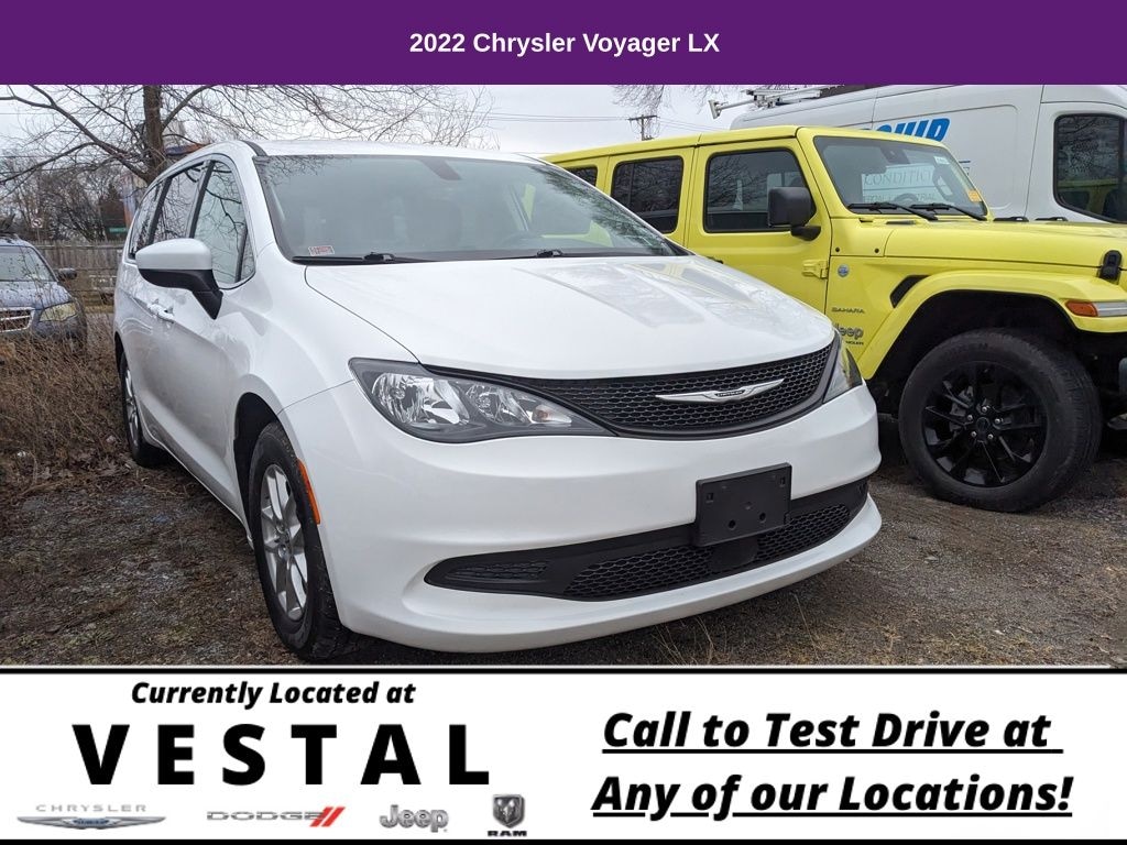 17" x 7" Aluminum Wheels, 3.25 Axle Ratio, 3rd row seats: split-bench, 4-Wheel Disc Brakes, 6 Speakers, ABS brakes, Air Conditioning, Alloy wheels, AM/FM radio: SiriusXM, Apple CarPlay/Android Auto, Automatic temperature control, Black Seats, Bluetooth, Brake assist, Bumpers: body-color, Cloth Bucket Seats, Compass, Delay-off headlights, Door auto-latch, Driver door bin, Driver vanity mirror, Driver's Seat Mounted Armrest, Dual front impact airbags, Dual front side impact airbags, Electronic Stability Control, Four wheel independent suspension, Front anti-roll bar, Front Bucket Seats, Front dual zone A/C, Front reading lights, Fully automatic headlights, Heated door mirrors, Heated front seats, Heated steering wheel, Illuminated entry, Knee airbag, Low tire pressure warning, Occupant sensing airbag, Outside temperature display, Overhead airbag, Overhead console, Panic alarm, ParkView Rear Back-Up Camera, Passenger door bin, Passenger seat mounted armrest, Passenger vanity mirror, Power door mirrors, Power driver seat, Power Liftgate, Power steering, Power windows, Quick Order Package 27E, Radio data system, Radio: Uconnect 5 w/7" Display, Rear air conditioning, Rear window defroster, Rear window wiper, Reclining 3rd row seat, Remote keyless entry, Security system, Speed control, Split folding rear seat, Spoiler, Steering wheel mounted audio controls, Tachometer, Telescoping steering wheel, Tilt steering wheel, Touring Suspension, Traction control, Trip computer, Variably intermittent wipers. 2022 Chrysler Voyager 4D Passenger Van LX Bright White Clearcoat FWD 9-Speed 948TE Automatic 3.6L V6 24V VVT