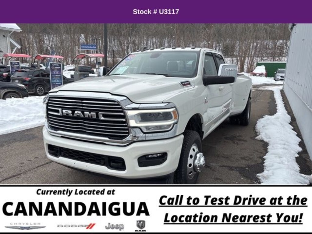 Save Time at the Dealership by Customizing your Deal Online!, Service Records on File, 10 Speakers, 115V Auxiliary Rear Power Outlet, 12" Touchscreen Display, 17 Speaker harman/kardon Premium Sound, 18" x 8" Polished Aluminum Wheels, 2 Way Rear Headrest Seat, 220 Amp Alternator, 2nd Row In Floor Storage Bins, 3.73 Axle Ratio, 4 Way Front Headrests, 4-Wheel Disc Brakes, 4G LTE Wi-Fi Hot Spot, 5th Wheel/Gooseneck Towing Prep Group, 6000# Front Axle w/Hub Ext, 8.4" Touchscreen Display, ABS brakes, Active Noise Control System, Adaptive Steering System, Air Conditioning, Alexa Built-In, Alloy wheels, AM/FM radio: SiriusXM with 360L, Apple CarPlay, Apple CarPlay/Android Auto, Auto Adjust In Reverse Exterior Mirrors, Auto Dimming Exterior Passenger Mirror, Auto High Beam Headlamp Control, Auto Level Rear Air Suspension, Auto Power-Folding Mirrors, Auto-Dimming Exterior Mirrors, Auto-dimming Rear-View mirror, Automatic temperature control, Bed Utility Group, Blind Spot & Cross Path Detection, Box & Rear Fender Clearance Lamps, Brake assist, Bumpers: body-color, Center Hub, Chrome Exterior Mirrors, Clearance Lamps, Compass, Connected Travel & Traffic Services, Connectivity - US/Canada, Delay-off headlights, Disassociated Touchscreen Display, Driver door bin, Driver vanity mirror, Dual front impact airbags, Dual front side impact airbags, Dual Rear Wheels, Electronic Stability Control, Electronically Controlled Throttle, Exterior Mirrors Courtesy Lamps, Exterior Mirrors w/Heating Element, Exterior Mirrors w/Memory, Exterior Mirrors w/Supplemental Signals, Foam Bottle Insert (Door Trim Panel), Folding Flat Load Floor Storage, For Details Visit DriveUconnect.com, For More Info, Call 800-643-2112, Forward & Reverse Utility Lights, Front anti-roll bar, Front Center Armrest w/Storage, Front dual zone A/C, Front LED Fog Lamps, Front License Plate Bracket, Front reading lights, Front Seat Back Map Pockets, Fully automatic headlights, Garage door transmitter, Global Telematics Box Module (TBM), Google Android Auto, GPS Antenna Input, GPS Navigation, HD Radio, Heated door mirrors, Heated Front Seats, Heated front seats, Heated Second Row Seats, Heated Steering Wheel, Heated steering wheel, High Back Seats, Illuminated entry, Integrated Center Stack Radio, Integrated Voice Command w/Bluetooth, Laramie Level B Equipment Group, Leather steering wheel, Leather Trim 40/20/40 Bench Seat, LED Bed Lighting, LED Reflector Headlamps, LED Tail Lamps, Low tire pressure warning, Mirror Running Lights, MOPAR Deployable Bed Step, MOPAR Front & Rear Rubber Floor Mats, MOPAR Spray In Bedliner, Navigation System, Occupant sensing airbag, Off-Road Information Pages, Outside temperature display, Overhead airbag, Overhead console, Panic alarm, ParkSense Front/Rear Park Assist System, ParkView Rear Back-Up Camera, Passenger door bin, Passenger vanity mirror, Power 8-Way Adjustable Passenger Seat, Power Adjust 8-Way Driver Seat, Power Adjust Mirrors, Power Adjustable Pedals w/Memory, Power door mirrors, Power driver seat, Power Heat Fold Memory Telescopic Mirrors, Power passenger seat, Power steering, Power Telescoping Mirrors, Power windows, Power-Adjustable Convex Aux Mirrors, Quick Order Package 2HH Laramie, Radio data system, Radio: Uconnect 5 Nav w/12.0" Display, Radio: Uconnect 5 Nav w/8.4" Display, Rain Sensitive Windshield Wipers, Rear 60/40 Folding Seat, Rear Power Sliding Window, Rear reading lights, Rear seat center armrest, Rear step bumper, Rear Window Defroster, Remote keyless entry, Remote Tailgate Release, Security system, Selectable Tire Fill Alert, SiriusXM Radio Service, SiriusXM w/360L, Speed control, Split folding rear seat, Steering wheel mounted audio controls, Tachometer, Tilt steering wheel, Tip Start, Traction control, Trailer Tow Pages, Trip computer, Turn signal indicator mirrors, Variably intermittent wipers, Voltmeter, Wheels: 17" x 6.0" Polished Aluminum, Wheels: 18" x 8.0" Polished Aluminum.
