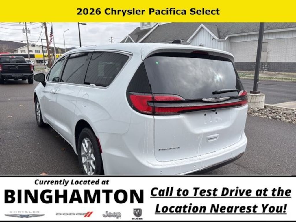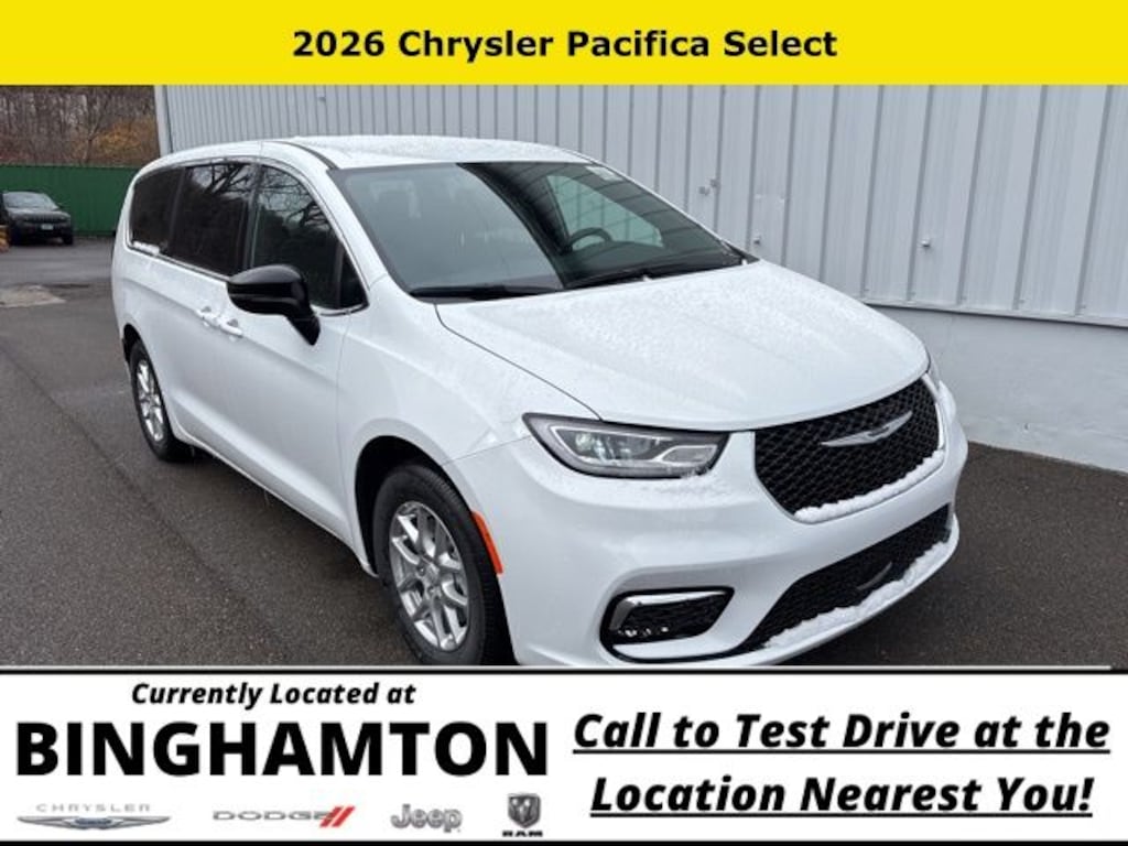 Bright White Clearcoat 2026 Chrysler Pacifica Select FWD 9-Speed 948TE Automatic 3.6L V6 24V VVT Save Time at the Dealership by Customizing your Deal Online!, 10.1" Touchscreen Display, 17" x 7.0" Aluminum Wheels, 3.25 Axle Ratio, 3rd row seats: split-bench, 4-Wheel Disc Brakes, 4G LTE Wi-Fi Hot Spot, 6 Speakers, ABS brakes, Air Conditioning, Alloy wheels, AM/FM radio: SiriusXM, Apple CarPlay, Apple CarPlay/Android Auto, Auto-dimming Rear-View mirror, Automatic temperature control, Black Seats, Brake assist, Bumpers: body-color, Caprice Leatherette Bucket Seats, Compass, Connectivity - US/Canada, Delay-off headlights, Disassociated Touchscreen Display, Driver door bin, Driver vanity mirror, Driver's Seat Mounted Armrest, Dual front impact airbags, Dual front side impact airbags, Electronic Stability Control, Emergency communication system: Chrysler Connect, For Details, Visit DriveUconnect.com, Four wheel independent suspension, Front anti-roll bar, Front Bucket Seats, Front dual zone A/C, Front fog lights, Front reading lights, Fully automatic headlights, Garage door transmitter, Google Android Auto, GPS Antenna Input, Heated door mirrors, Heated front seats, Heated steering wheel, Illuminated entry, Integrated Active Noise Cancellation, Integrated Center Stack Radio, Knee airbag, Low tire pressure warning, Memory seat, Occupant sensing airbag, Outside temperature display, Overhead airbag, Overhead console, Panic alarm, ParkView Rear Back-Up Camera, Passenger door bin, Passenger seat mounted armrest, Passenger vanity mirror, Power door mirrors, Power driver seat, Power Liftgate, Power steering, Power windows, Quick Order Package 27L, Radio data system, Radio: Uconnect 5 with 10.1" Display, Rain sensing wipers, Rear air conditioning, Rear reading lights, Rear window defroster, Rear window wiper, Reclining 3rd row seat, Remote keyless entry, Security system, Speed control, Split folding rear seat, Spoiler, Steering wheel mounted audio controls, Tachometer, Telescoping steering wheel, Tilt steering wheel, Touring Suspension, Traction control, Trip computer, Turn signal indicator mirrors, USB Host Flip, Variably intermittent wipers, Voltmeter.