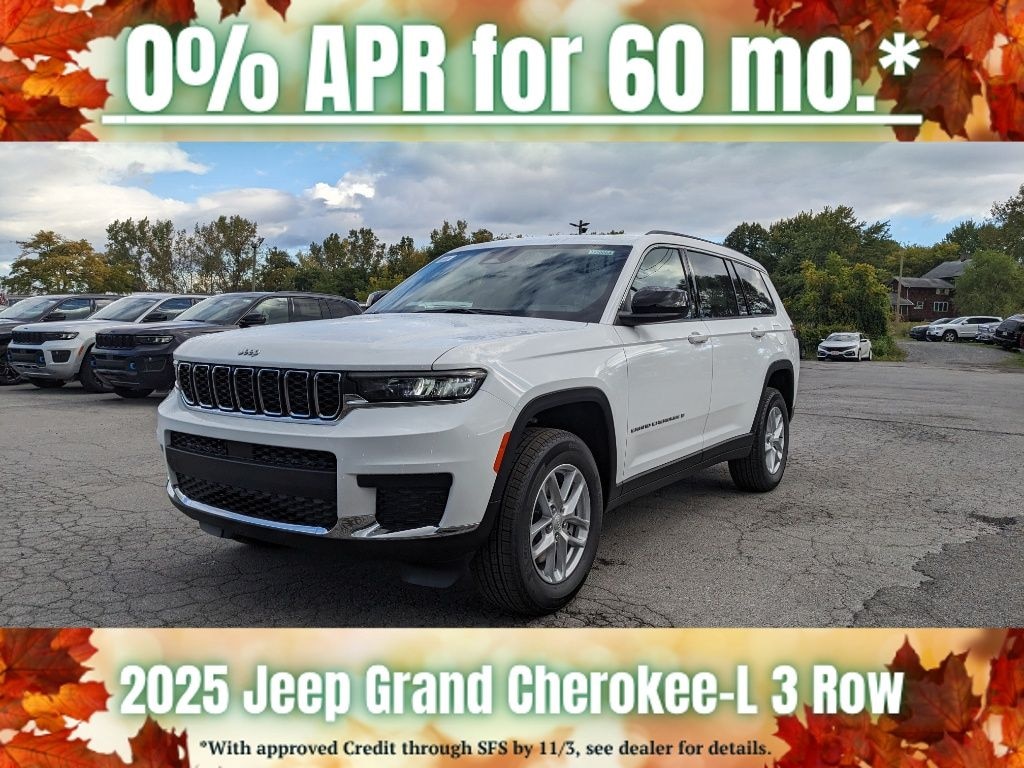 Bright White Clearcoat 2025 Jeep Grand Cherokee L Laredo 4WD 8-Speed Automatic 3.6L V6 24V VVT 3.45 Rear Axle Ratio, 3rd row seats: split-bench, 4-Wheel Disc Brakes, 6 Speakers, ABS brakes, Air Conditioning, Alloy wheels, AM/FM radio: SiriusXM, Anti-whiplash front head restraints, Automatic temperature control, Bluetooth, Brake assist, Bumpers: body-color, Cloth Seats, Compass, Delay-off headlights, Driver door bin, Driver vanity mirror, Dual front impact airbags, Dual front side impact airbags, Electronic Stability Control, Emergency communication system, Four wheel independent suspension, Front anti-roll bar, Front Bucket Seats, Front Center Armrest w/Storage, Front dual zone A/C, Front License Plate Bracket, Front reading lights, Fully automatic headlights, Heated door mirrors, Illuminated entry, Knee airbag, Laredo X, Low tire pressure warning, Manual Fold Seatbacks, Model Year Tracking, Normal Duty Suspension, Occupant sensing airbag, Outside temperature display, Overhead airbag, Overhead console, Panic alarm, ParkView Rear Back-Up Camera, Passenger door bin, Passenger vanity mirror, Power door mirrors, Power driver seat, Power steering, Power Sunroof, Power windows, Quick Order Package 23D Laredo X, Radio data system, Radio: Uconnect 5 w/8.4" Display, Rear air conditioning, Rear anti-roll bar, Rear reading lights, Rear window defroster, Rear window wiper, Reclining 3rd row seat, Remote keyless entry, Security system, Speed control, Speed-Sensitive Wipers, Split folding rear seat, Spoiler, Steering wheel mounted audio controls, Tachometer, Telescoping steering wheel, Tilt steering wheel, Traction control, Trip computer, Variably intermittent wipers, Wheels: 18" x 8.0" Fully Painted Aluminum.