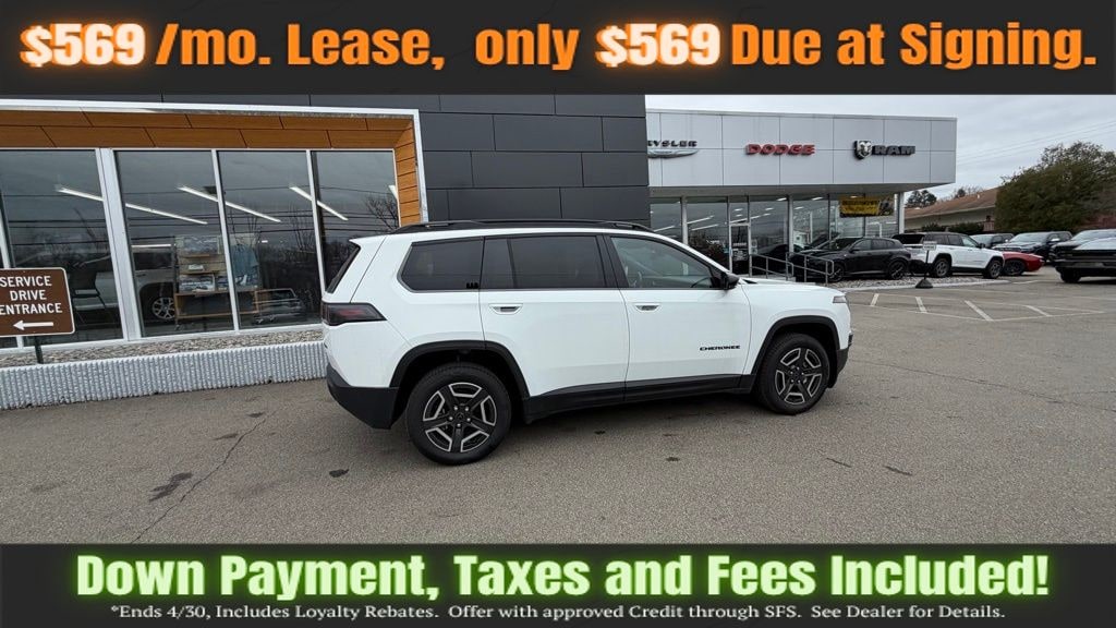 Bright White Clearcoat 2026 Jeep Cherokee Limited 4WD CVT 1.6L I4 1.6L I4, 4-Wheel Disc Brakes, 4.16 Final Drive Ratio, 4G LTE Wi-Fi Hot Spot, 6 Speakers, ABS brakes, Air Conditioning, Alloy wheels, AM/FM radio: SiriusXM with 360L, Apple CarPlay, Apple CarPlay/Android Auto, Auto High-beam Headlights, Auto-Dimming Rear-View Mirror, Automatic temperature control, Bluetooth, Brake assist, Capri Leatherette Perforated Seats, Cognac Interior Stitching, Compass, Delay-off headlights, Driver door bin, Driver vanity mirror, Dual front impact airbags, Dual front side impact airbags, Electronic Stability Control, Emergency communication system, Exterior Mirrors Courtesy Lamps, Exterior Mirrors with Supplemental Signals, Four wheel independent suspension, Front anti-roll bar, Front Bucket Seats, Front Center Armrest, Front dual zone A/C, Front fog lights, Front License Plate Bracket, Front reading lights, Fully automatic headlights, Global Telematics Box Module (TBM), Gloss Black Mirrors, Google Android Auto, Heated door mirrors, Heated Exterior Mirrors, Heated front seats, Heated Steering Wheel, Illuminated entry, Knee airbag, Limited Badge, Low tire pressure warning, Occupant sensing airbag, Outside temperature display, Overhead airbag, Overhead console, Panic alarm, ParkView Rear Back-Up Camera, Passenger door bin, Passenger vanity mirror, Power 2-Way Passenger Lumbar Adjust, Power Adjust 6-Way Front Passenger Seat, Power door mirrors, Power driver seat, Power Liftgate, Power Multi-Function Foldaway Mirrors, Power steering, Power windows, Quick Order Package 23G Limited, Radio data system, Radio: Uconnect 5 with 12.3" Display, Rain sensing wipers, Rear anti-roll bar, Rear reading lights, Rear seat center armrest, Rear side impact airbag, Rear window defroster, Rear window wiper, Remote keyless entry, Security Alarm, SiriusXM with 360L, Soul Cloth Seats with Labyrinth Embossing, Speed control, Speed-sensing steering, Split folding rear seat, Spoiler, Steering wheel mounted audio controls, Tachometer, Telescoping steering wheel, Tilt steering wheel, Traction control, Trip computer, Universal Garage Door Opener, US/Canada Connectivity, Variably intermittent wipers, Wheels: 18" x 7" Machine Face Painted Aluminum, Wireless Charging Pad, 1.6L I4.