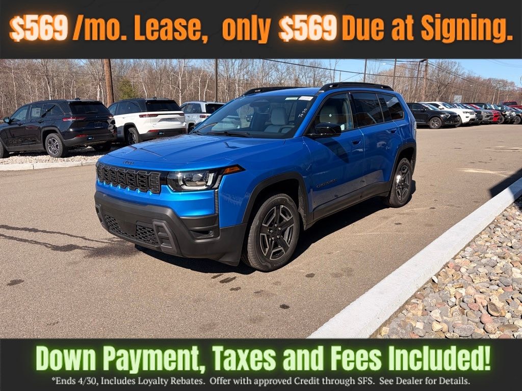 Hydro Blue Pearlcoat 2026 Jeep Cherokee Limited 4WD CVT 1.6L I4 1.6L I4, 4-Wheel Disc Brakes, 4.16 Final Drive Ratio, 4G LTE Wi-Fi Hot Spot, 6 Speakers, ABS brakes, Air Conditioning, Alloy wheels, AM/FM radio: SiriusXM with 360L, Apple CarPlay, Apple CarPlay/Android Auto, Auto High-beam Headlights, Auto-Dimming Rear-View Mirror, Automatic temperature control, Bluetooth, Brake assist, Capri Leatherette Perforated Seats, Cognac Interior Stitching, Compass, Delay-off headlights, Driver door bin, Driver vanity mirror, Dual front impact airbags, Dual front side impact airbags, Electronic Stability Control, Emergency communication system, Exterior Mirrors Courtesy Lamps, Exterior Mirrors with Supplemental Signals, Four wheel independent suspension, Front anti-roll bar, Front Bucket Seats, Front Center Armrest, Front dual zone A/C, Front fog lights, Front License Plate Bracket, Front reading lights, Fully automatic headlights, Global Telematics Box Module (TBM), Gloss Black Mirrors, Google Android Auto, GPS Antenna Input, Heated door mirrors, Heated Exterior Mirrors, Heated front seats, Heated Steering Wheel, Illuminated entry, Knee airbag, Limited Badge, Low tire pressure warning, Occupant sensing airbag, Outside temperature display, Overhead airbag, Overhead console, Panic alarm, ParkView Rear Back-Up Camera, Passenger door bin, Passenger vanity mirror, Power 2-Way Passenger Lumbar Adjust, Power Adjust 6-Way Front Passenger Seat, Power door mirrors, Power driver seat, Power Liftgate, Power Multi-Function Foldaway Mirrors, Power steering, Power windows, Quick Order Package 23G Limited, Radio data system, Radio: Uconnect 5 with 12.3" Display, Rain sensing wipers, Rear anti-roll bar, Rear reading lights, Rear seat center armrest, Rear side impact airbag, Rear window defroster, Rear window wiper, Remote keyless entry, Security Alarm, SiriusXM with 360L, Soul Cloth Seats with Labyrinth Embossing, Speed control, Speed-sensing steering, Split folding rear seat, Spoiler, Steering wheel mounted audio controls, Tachometer, Telescoping steering wheel, Tilt steering wheel, Traction control, Trip computer, Universal Garage Door Opener, US/Canada Connectivity, Variably intermittent wipers, Wheels: 18" x 7" Machine Face Painted Aluminum, Wireless Charging Pad, 1.6L I4.