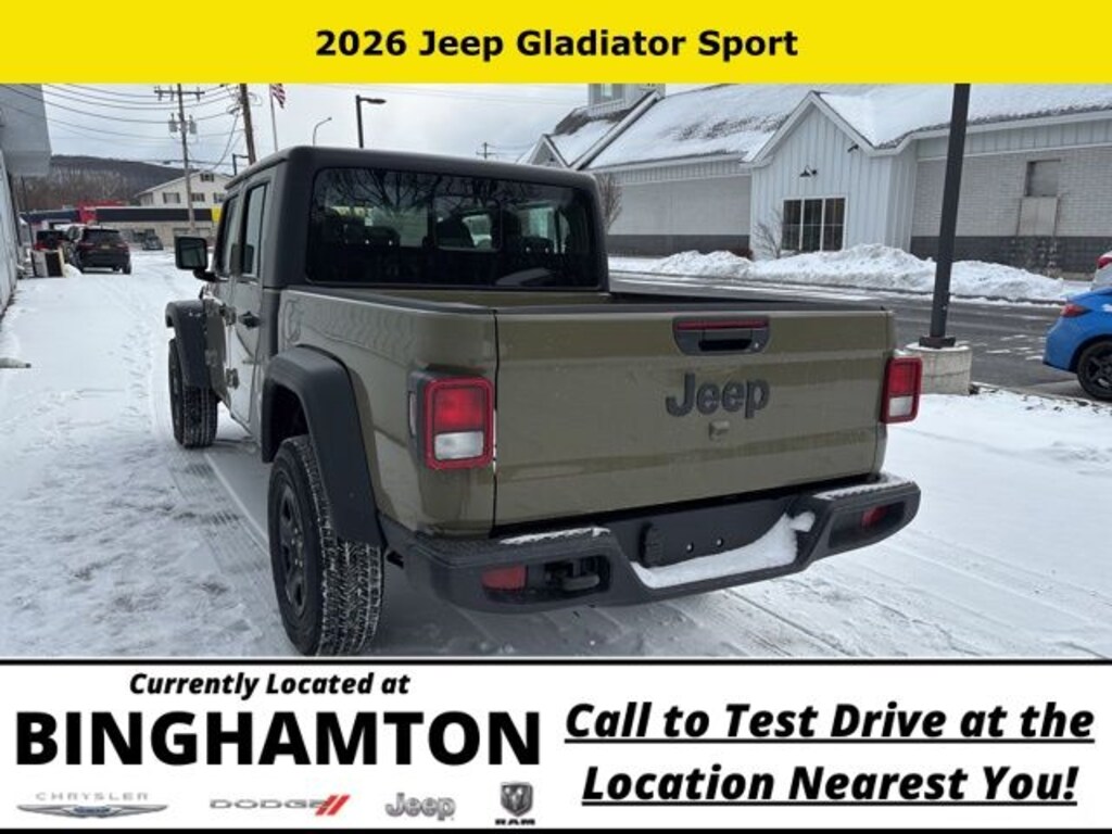 41 2026 Jeep Gladiator Sport 4WD 8-Speed Automatic 3.6L V6 24V VVT Save Time at the Dealership by Customizing your Deal Online!, 110 Mph Vehicle Max Speed Calibration, 12.3" Touchscreen Display, 3.73 Rear Axle Ratio, 4-Wheel Disc Brakes, 4G LTE Wi-Fi Hot Spot, 8 Speakers, ABS brakes, Air Conditioning, Alexa Built-in, AM/FM radio: SiriusXM with 360L, Apple CarPlay, Apple CarPlay/Android Auto, Black 3-Piece Hard Top, Brake assist, Compass, Connectivity - US/Canada, Delay-off headlights, Driver door bin, Driver vanity mirror, Dual front impact airbags, Dual front side impact airbags, Electronic Stability Control, Freedom Panel Storage Bag, Front anti-roll bar, Front Bucket Seats, Front Center Armrest w/Storage, Front fog lights, Front License Plate Bracket, Front reading lights, Google Android Auto, Illuminated entry, Integrated roll-over protection, Low tire pressure warning, Normal Duty Suspension, Occupant sensing airbag, Outside temperature display, Overhead airbag, Panic alarm, ParkView Rear Back-Up Camera, Passenger door bin, Passenger vanity mirror, Power steering, Power windows, Quick Order Package 24B Sport, Radio data system, Radio: Uconnect 5 with 12.3" Display, Rear anti-roll bar, Rear reading lights, Rear Sliding Window, Rear Window Defroster, Remote keyless entry, Speed control, Split folding rear seat, Star MOPAR Body Side Graphic, Steering wheel mounted audio controls, Tachometer, Telescoping steering wheel, Tilt steering wheel, Traction control, Trip computer, USB Host Flip, Variably intermittent wipers, Voltmeter, Wheels: 17" x 7.5" Black Steel Styled.
