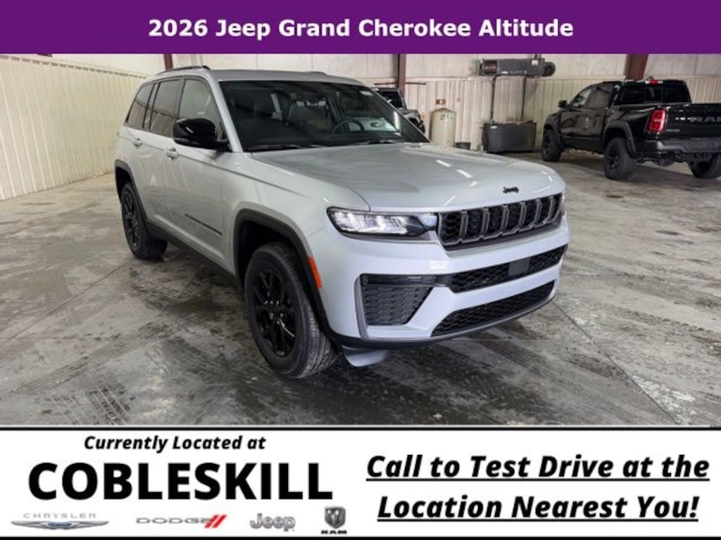 Silver Zynith 2026 Jeep Grand Cherokee Laredo 4WD 8-Speed Automatic 2.0L V6 SMPI Turbocharged DOHC 24V LEV3-SULEV30 293hp Save Time at the Dealership by Customizing your Deal Online!, 4WD, 115V Auxiliary Power Outlet, 12.3" Touchscreen Display, 240 Amp Alternator, 4-Wheel Disc Brakes, 4G LTE Wi-Fi Hot Spot, 6 Speakers, ABS brakes, Active Driving Assist System, Active Noise Control System, Air Conditioning, Alloy wheels, AM/FM radio: SiriusXM, an-Teak/Satin Chrome Interior Accents, Anti-whiplash front head restraints, Apple CarPlay, AppLink/Apple CarPlay and Android Auto, Automatic temperature control, Auxiliary Battery, Black Headliner, Body Color Door Handles (B), Brake assist, Bumpers: body-color, Capri Leatherette/Suede Seats, Cloth Seats, Compass, Connected Travel and Traffic Services, Connectivity - US/Canada, Delay-off headlights, Delete Laredo Badge, Disassociated Touchscreen Display, Driver door bin, Driver vanity mirror, Dual Exhaust Tips, Dual front impact airbags, Dual front side impact airbags, Electronic Stability Control, Emergency communication system, Exterior Accents Dark Neutral Metallic, For Details, Visit DriveUconnect.com, Four wheel independent suspension, Front anti-roll bar, Front Bucket Seats, Front Center Armrest w/Storage, Front dual zone A/C, Front Fascia Upper A, Front License Plate Bracket, Front reading lights, Fully automatic headlights, Global Telematics Box Module (TBM), Gloss Black Exterior Mirrors, Google Android Auto, GPS Antenna Input, GPS Navigation, HD Radio, Heated door mirrors, Heated Exterior Mirrors, Heated Front Seats, Heated Steering Wheel, Heavy-Duty Engine Cooling, Illuminated entry, Integrated Center Stack Radio, Integrated Voice Command with Bluetooth, Intersection Collision Assist System, Knee airbag, Laredo Altitude Appearance Package, Low tire pressure warning, Manual Folding Exterior Mirrors, MyFlexCare Service Plan, Normal Duty Suspension, Occupant sensing airbag, Outside temperature display, Overhead airbag, Overhead console, Panic alarm, ParkView Rear Back-Up Camera, Passenger door bin, Passenger vanity mirror, Power door mirrors, Power driver seat, Power Liftgate, Power steering, Power Sunroof, Power windows, Quick Order Package 2BB Laredo Altitude, Radio data system, Radio: Uconnect 5 Nav with 12.3" Display, Radio: Uconnect 5 with 8.4" Display, Rain Sensitive Windshield Wipers, Rear anti-roll bar, Rear Fascia Upper A, Rear reading lights, Rear window defroster, Rear window wiper, Remote keyless entry, Remote Start System, Secondary Active Grille Shutters, Security system, Selec-Terrain System, Selectable Tire Fill Alert, SiriusXM with 360L, Speed control, Speed-Sensitive Wipers, Split folding rear seat, Spoiler, Steering wheel mounted audio controls, Tachometer, Telescoping steering wheel, Tilt steering wheel, Traction control, Traffic Sign Recognition, Trip computer, USB Host Flip, Variably intermittent wipers, Voltmeter, Wheels: 18" x 8.0" Fully Painted Aluminum, Wheels: 18" x 8.0" Fully Painted Aluminum 1, Wireless Charging Pad, 4WD.