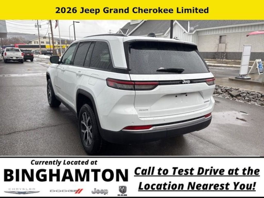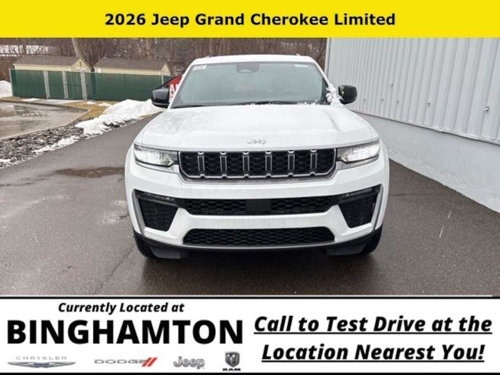Bright White Clearcoat 2026 Jeep Grand Cherokee Limited 4WD 8-Speed Automatic 2.0L I4 PDI Turbocharged DOHC 16V LEV3-SULEV30 324hp Save Time at the Dealership by Customizing your Deal Online!, 4WD, 10 Speakers, 3.70 Rear Axle Ratio, 4-Wheel Disc Brakes, 4G LTE Wi-Fi Hot Spot, ABS brakes, Active Noise Control System, Air Conditioning, Alloy wheels, AM/FM radio: SiriusXM with 360L, Anti-whiplash front head restraints, Apple CarPlay, AppLink/Apple CarPlay and Android Auto, Audio memory, Auto High-beam Headlights, Automatic temperature control, Auxiliary Battery, Brake assist, Bumpers: body-color, Capri Leatherette Seats, Compass, Connectivity - US/Canada, Delay-off headlights, Disassociated Touchscreen Display, Driver door bin, Driver vanity mirror, Dual front impact airbags, Dual front side impact airbags, Electronic Stability Control, Emergency communication system, For Details, Visit DriveUconnect.com, Four wheel independent suspension, Front anti-roll bar, Front Bucket Seats, Front Center Armrest w/Storage, Front dual zone A/C, Front fog lights, Front License Plate Bracket, Front reading lights, Fully automatic headlights, Garage door transmitter, Global Telematics Box Module (TBM), Gloss Black Exterior Mirrors, Google Android Auto, GPS Antenna Input, Heated door mirrors, Heated Exterior Mirrors, Heated front seats, Heated rear seats, Heated steering wheel, Illuminated entry, Integrated Center Stack Radio, Integrated Voice Command with Bluetooth, Knee airbag, Low tire pressure warning, Manual Folding Exterior Mirrors, Memory seat, Navigation System, Normal Duty Suspension, Occupant sensing airbag, Outside temperature display, Overhead airbag, Overhead console, Panic alarm, ParkView Rear Back-Up Camera, Passenger door bin, Passenger vanity mirror, Power door mirrors, Power driver seat, Power Liftgate, Power passenger seat, Power steering, Power windows, Quick Order Package 2CE Limited, Radio data system, Radio: Uconnect 5 Nav with 12.3" Display, Rear anti-roll bar, Rear reading lights, Rear window defroster, Rear window wiper, Remote keyless entry, Security system, Speed control, Speed-Sensitive Wipers, Split folding rear seat, Spoiler, Steering wheel mounted audio controls, Tachometer, Telescoping steering wheel, Tilt steering wheel, Traction control, Trip computer, Turn signal indicator mirrors, USB Host Flip, Variably intermittent wipers, Voltmeter, Wheels: 18" x 8.0" Polished/Painted Aluminum, 4WD.