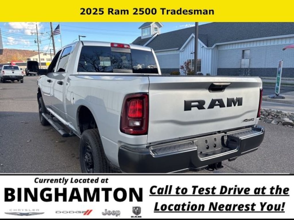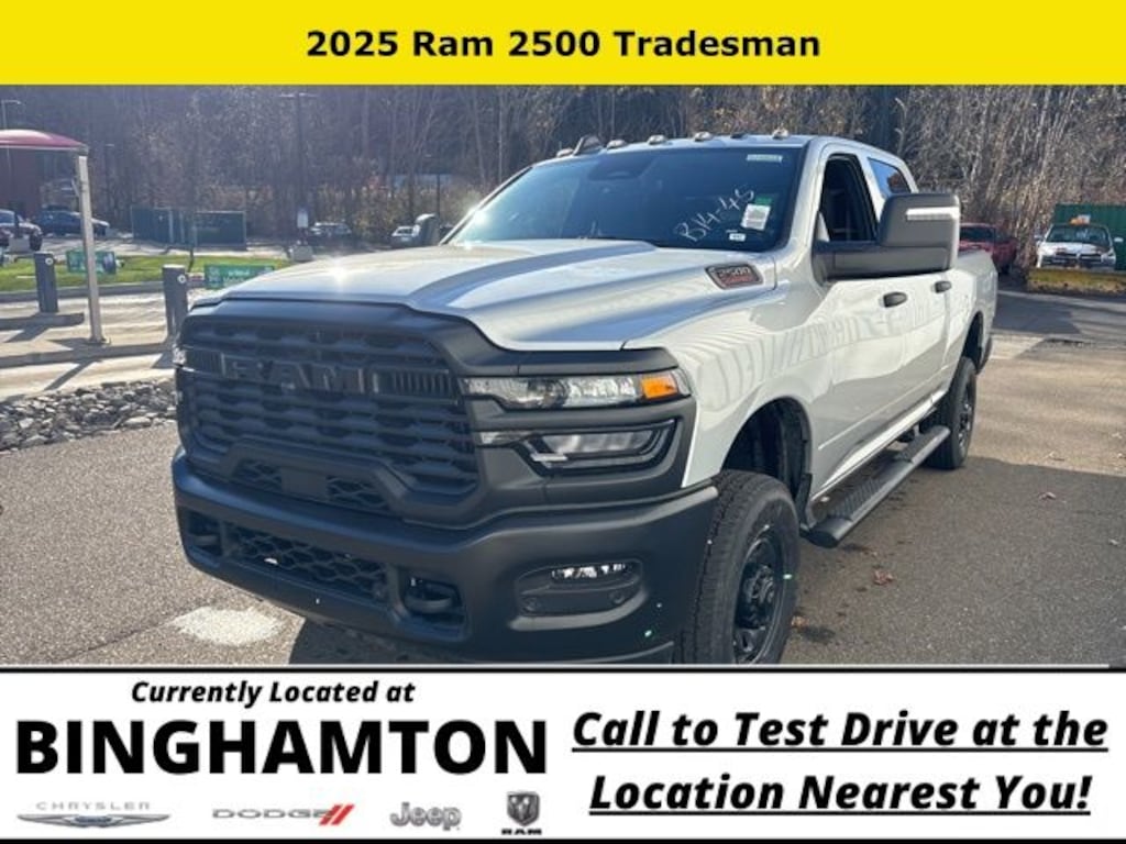 Silver Zynith 2025 Ram 2500 Tradesman 4WD 8-Speed Automatic 6.4L V8 Save Time at the Dealership by Customizing your Deal Online!, 115V Auxiliary Front Power Outlet, 12" Touchscreen Display, 2 Way Rear Headrest Seat, 3.73 Axle Ratio, 4 Way Front Headrests, 4-Wheel Disc Brakes, 40/20/40 Split Bench Seat, 400W Inverter, 4G LTE Wi-Fi Hot Spot, 6 Speakers, ABS brakes, Air Conditioning, Air Conditioning ATC w/Dual Zone Control, Alexa Built-In, AM/FM radio: SiriusXM, Anti-Spin Differential Rear Axle, Apple CarPlay, Apple CarPlay/Android Auto, Auto-Dimming Rear-View Mirror, Bed Utility Group (DISC), Black Exterior Mirrors, Black Wheel Center Hub, Brake assist, Carpet Floor Covering, Clearance Lamps, Cloth 40/20/40 Bench Seat, Compass, Connected Travel & Traffic Services, Connectivity - US/Canada, Delay-off headlights, Disassociated Touchscreen Display, Driver door bin, Dual front impact airbags, Dual front side impact airbags, Electronic Stability Control, Emergency Vehicle Alert System (EVAS), Exterior 115V AC Outlet, Exterior Mirrors Courtesy Lamps, Exterior Mirrors w/Heating Element, Exterior Mirrors w/Supplemental Signals, Front & Rear Floor Mats, Front anti-roll bar, Front Armrest w/Cupholders, Front Center Armrest w/Storage, Front fog lights, Front License Plate Bracket, Front reading lights, Fully automatic headlights, Global Telematics Box Module (TBM), Google Android Auto, GPS Antenna Input, GPS Navigation, HD Radio, Heavy Duty Vinyl 40/20/40 Split Bench Seat, Illuminated entry, Integrated Voice Command w/Bluetooth, LED Bed Lighting, Low tire pressure warning, Manual Adjust 4-Way Driver Seat, Manual Adjust 4-Way Front Passenger Seat, Manual Folding Exterior Mirrors, Manual Telescoping Mirrors, Mirror Running Lights, Mopar Black Tubular Side Steps, MOPAR Deployable Bed Step, MOPAR Front & Rear Rubber Floor Mats, MOPAR Spray In Bedliner, Occupant sensing airbag, Off-Road Info Pages, Outside temperature display, Overhead airbag, Overhead console, Panic alarm, ParkSense Front/Rear Park Assist System, ParkView Rear Back-Up Camera, Passenger door bin, Passenger vanity mirror, Power Adjust Mirrors, Power Adjustable Convex Aux Mirrors, Power Heated Folding Telescope Mirrors, Power steering, Power windows, Quick Order Package 2UA Tradesman, Radio data system, Radio: Uconnect 5 Nav w/12.0" Display, Radio: Uconnect 5 w/8.4" Display, Rear anti-roll bar, Rear Folding Seat, Rear Power Sliding Window, Rear step bumper, Rear window defroster, Remote keyless entry, Remote USB Port - Charge Only, Selectable Tire Fill Alert, SiriusXM Radio Service, SiriusXM w/360L, Speed control, Storage Tray, Tachometer, Tilt steering wheel, Tinted Acoustic Windshield Glass, Traction control, Tradesman Level 1 Equipment Group, Trailer Tow Pages, Variably intermittent wipers, Voltmeter, Wheels: 17" x 7.5" Black Steel Styled.