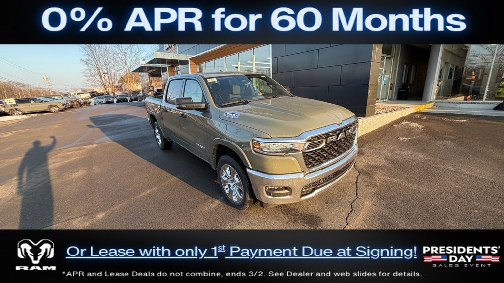 Canyon Lake 2026 Ram 1500 Big Horn/Lone Star 4WD 8-Speed Automatic 3.6L V6 24V VVT 115V Auxiliary Power Outlet, 2nd Row in Floor Storage Bins, 3 Rear Seat Head Restraints, 4 Way Front Headrests, 4-Wheel Disc Brakes, 400W Inverter, 48V Belt Starter Generator, 4G LTE Wi-Fi Hot Spot, 6 Speakers, ABS brakes, Air Conditioning, Alloy wheels, AM/FM radio, Apple CarPlay, Apple CarPlay/Android Auto, Auto High-beam Headlights, Auto Power-Folding Mirrors, Auto-Dimming Exterior Driver Mirror, Auto-Dimming Rear-View Mirror, Big Horn Level 1 Equipment Group, Black Exterior Mirrors, Black Premium Power Mirrors, Bluetooth, Body Color Fender Flares, Brake assist, Bucket Seats, Bumpers: chrome, Center Console Parts Module, Cloth Bucket Seats, Compass, Connectivity - US/Canada, Convex Wide-Angle Exterior Mirror Insert, Delay-off headlights, Deluxe Cloth Bucket Seats, Driver door bin, Dual front impact airbags, Dual front side impact airbags, Electronic Stability Control, Exterior Mirrors Courtesy Lamps, Exterior Mirrors with Heating Element, Exterior Mirrors with Supplemental Signals, Front anti-roll bar, Front Bucket Seats, Front Center Armrest w/Storage, Front fog lights, Front License Plate Bracket, Front reading lights, Front Seat Back Map Pockets, Front wheel independent suspension, Full Length Floor Console, Fully automatic headlights, Global Telematics Box Module, Glove Box Lamp, Google Android Auto, GPS Antenna Input, Heated door mirrors, Heated Front Seats, Heated Steering Wheel, Illuminated entry, Integrated Center Stack Radio, Integrated Voice Command with Bluetooth, Leather Wrapped Steering Wheel, Low tire pressure warning, Manual Adjust 4-Way Driver Seat, Manual Adjust 4-Way Front Passenger Seat, Manual Folding Exterior Mirrors, Manufacturer's Statement of Origin, Occupant sensing airbag, Outside temperature display, Overhead airbag, Overhead console, Panic alarm, ParkView Rear Back-Up Camera, Passenger door bin, Passenger vanity mirror, Power 2-Way Driver Lumbar Adjust, Power Adjust 8-Way Driver Seat, Power Adjustable Pedals, Power door mirrors, Power steering, Power windows, Quick Order Package 23Z Big Horn, Radio data system, Radio: Uconnect 5 W with 8.4" Display, RAM Grille Badge - Chrome, Rear 60/40 Folding Seat, Rear anti-roll bar, Rear Center Armrest, Rear Dome with on/Off Switch Lamp, Rear Power Sliding Window, Rear step bumper, Rear Window Defroster, Remote keyless entry, SiriusXM Radio Service, SiriusXM Satellite Radio, Speed control, Steering Wheel Mounted Audio Controls, Sun Visors with Illuminated Vanity Mirrors, Supplier Part Tracking (J-1), Tachometer, Telescoping steering wheel, Tilt steering wheel, Traction control, Trip computer, Universal Garage Door Opener, USB Host Flip, Variably intermittent wipers, Wheels: 20" x 9" Aluminum Chrome Clad.