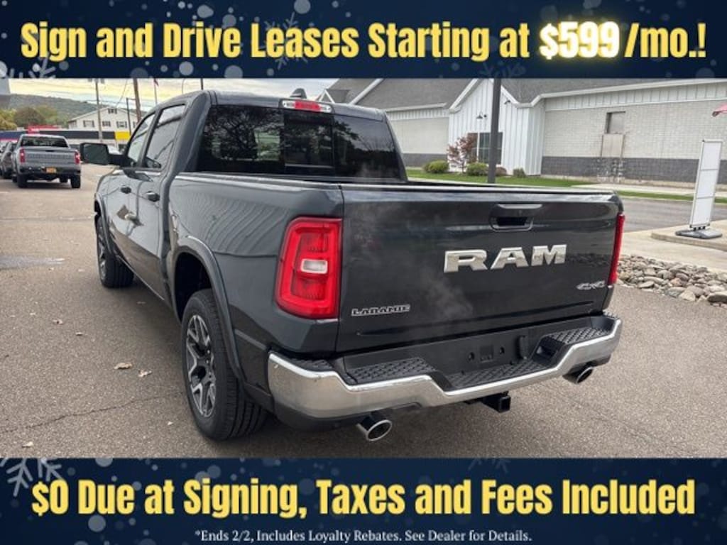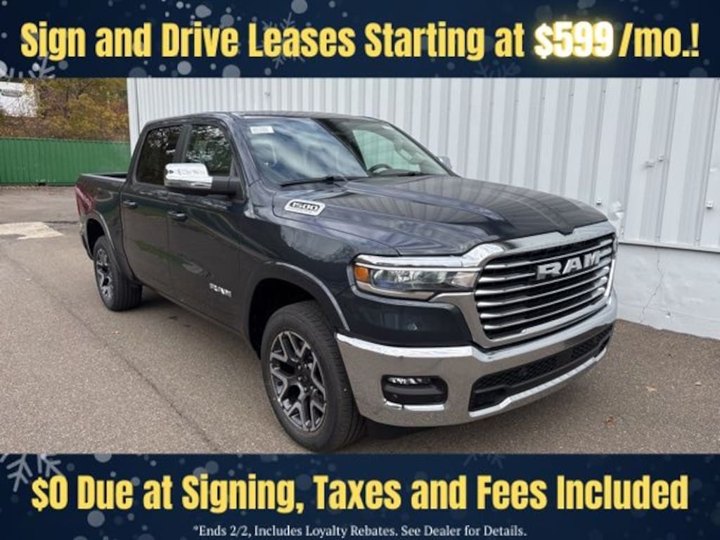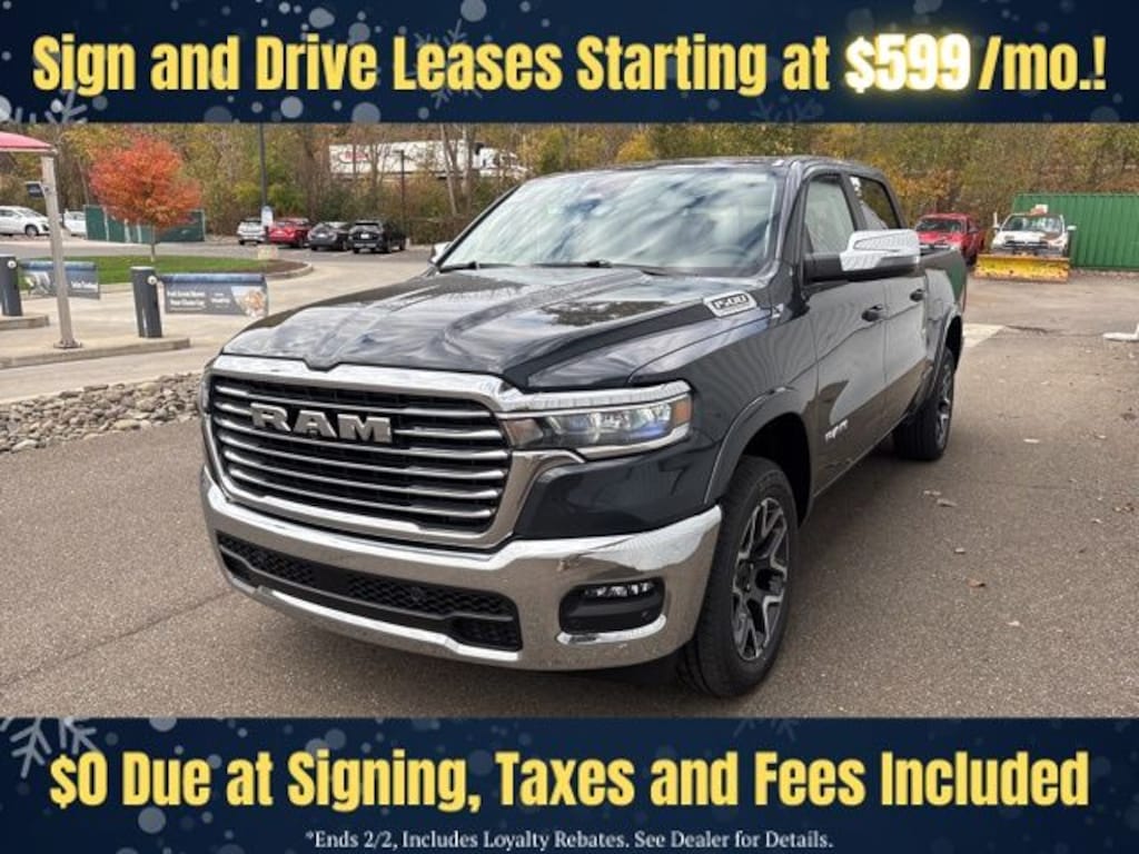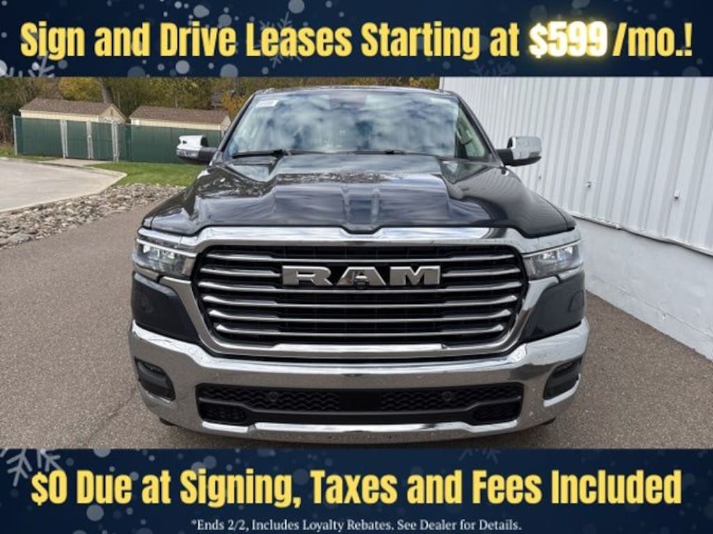 Forged Blue Metallic 2026 Ram 1500 Laramie 4WD 8-Speed Automatic 3.0L I6 Save Time at the Dealership by Customizing your Deal Online!, 10 Speakers, 3.55 Rear Axle Ratio, 4-Wheel Disc Brakes, 4G LTE Wi-Fi Hot Spot, ABS brakes, Active Noise Control System, Air Conditioning, Alloy wheels, AM/FM radio: SiriusXM with 360L, Apple CarPlay/Android Auto, Audio memory, Auto High-beam Headlights, Auto Power-Folding Mirrors, Auto-dimming door mirrors, Auto-Dimming Exterior Driver Mirror, Auto-dimming Rear-View mirror, Automatic temperature control, Brake assist, Bumpers: chrome, Chrome Exterior Mirrors, Compass, Connected Travel and Traffic Services, Connectivity - US/Canada, Convex Wide-Angle Exterior Mirror Insert, Delay-off headlights, Driver door bin, Driver vanity mirror, Dual front impact airbags, Dual front side impact airbags, Electronic Stability Control, Exterior Mirrors Courtesy Lamps, Exterior Mirrors with Heating Element, Exterior Mirrors with Memory, Exterior Mirrors with Supplemental Signals, Front anti-roll bar, Front Bucket Seats, Front Center Armrest w/Storage, Front dual zone A/C, Front fog lights, Front License Plate Bracket, Front reading lights, Front wheel independent suspension, Fully automatic headlights, Garage door transmitter, GPS Navigation, Heated door mirrors, Heated front seats, Heated rear seats, Heated steering wheel, Illuminated entry, Integrated Center Stack Radio, Integrated Voice Command with Bluetooth, Laramie Level 1 Equipment Group, Leather steering wheel, Leather Trimmed Bucket Seats, Low tire pressure warning, Manufacturer's Statement of Origin, Memory seat, MOPAR Front and Rear Rubber Floor Mats, Navigation System, Occupant sensing airbag, Off-Road Information Pages, Outside temperature display, Overhead airbag, Overhead console, Panic alarm, ParkView Rear Back-Up Camera, Passenger door bin, Passenger vanity mirror, Power door mirrors, Power driver seat, Power passenger seat, Power steering, Power windows, Quick Order Package 21H Laramie, Radio data system, Radio: Uconnect 5 Navigation with 12.0" Display, Rain Sensitive Windshield Wipers, RAM Grille Badge - Chrome, Rear anti-roll bar, Rear reading lights, Rear seat center armrest, Rear step bumper, Remote keyless entry, Remote Tailgate Release, Security system, SiriusXM Radio Service, SiriusXM with 360L, Speed control, Split folding rear seat, Steering wheel mounted audio controls, Tachometer, Telescoping steering wheel, Tilt steering wheel, Traction control, Trip computer, Turn signal indicator mirrors, USB Host Flip, Variably intermittent wipers, Ventilated front seats, Voltmeter, Wheels: 20" x 9" Premium Paint/Polish.