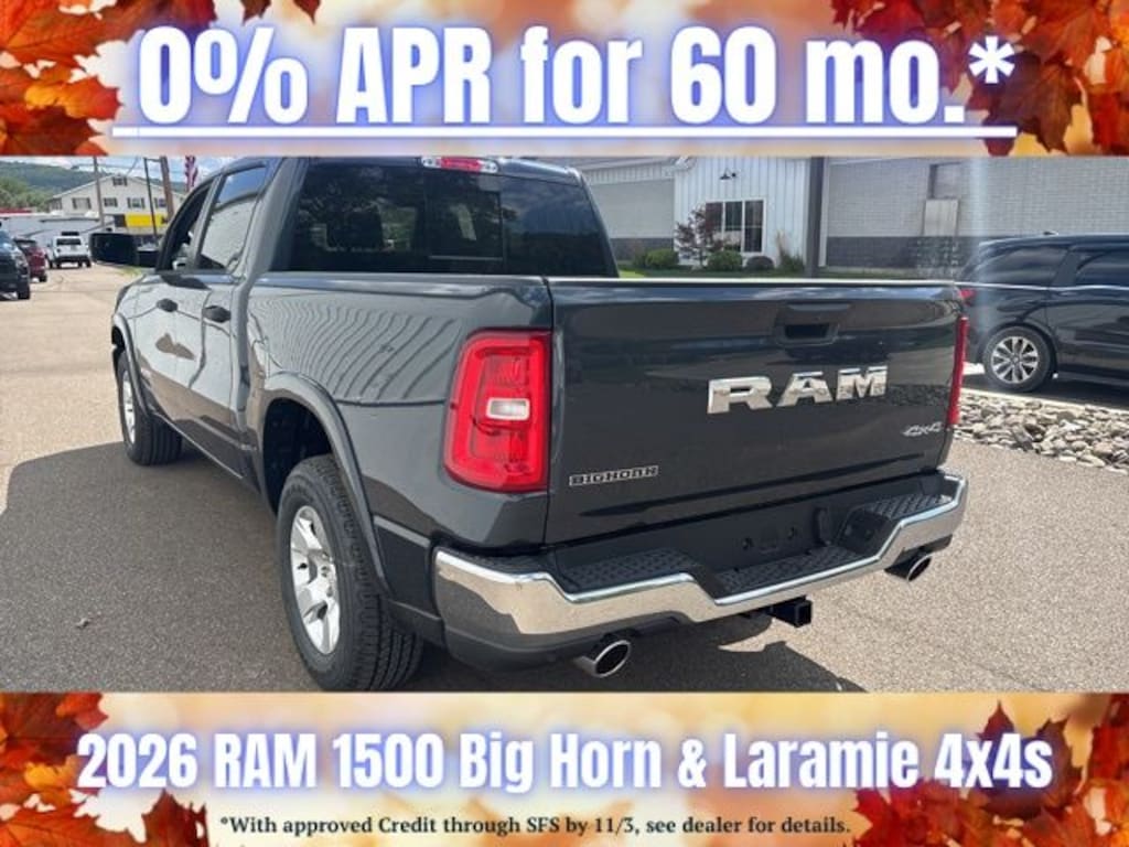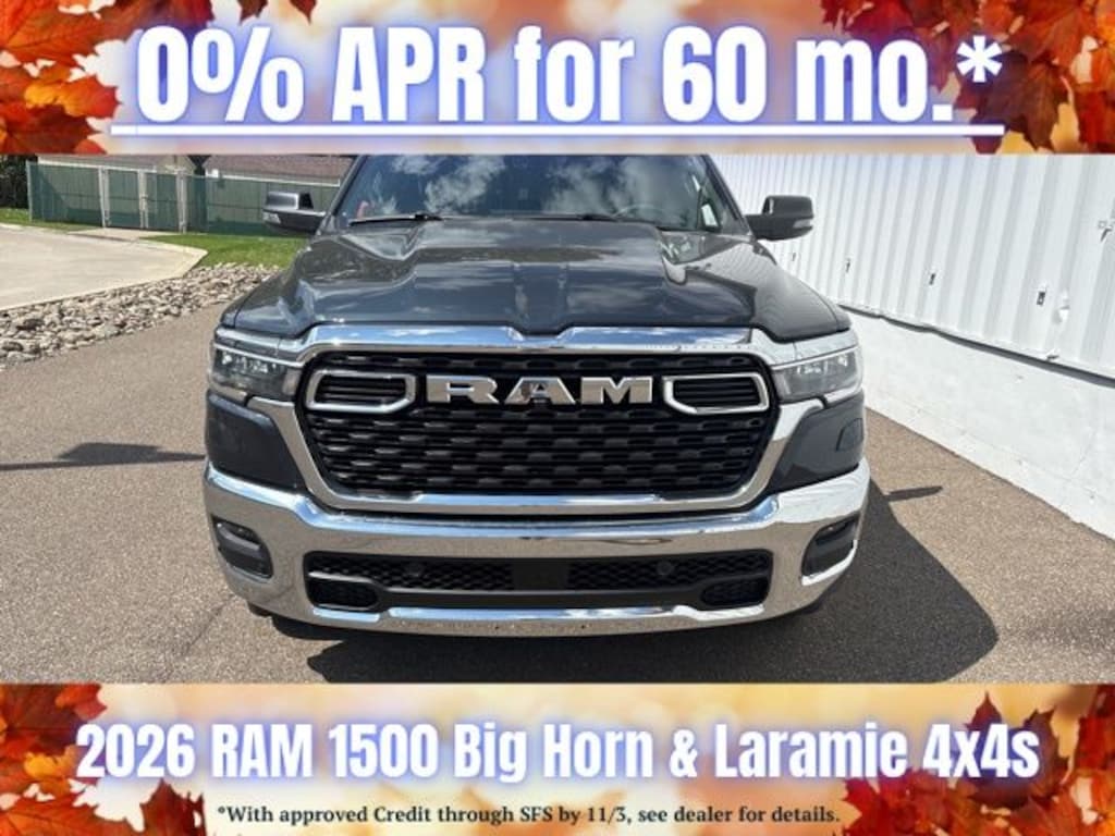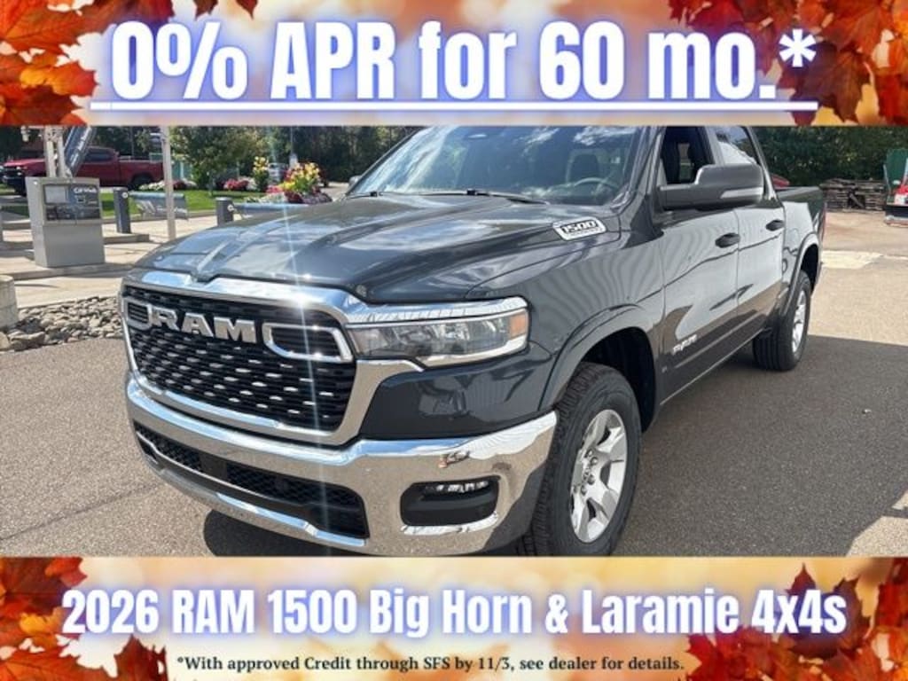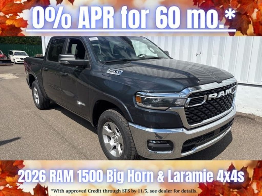Forged Blue Metallic 2026 Ram 1500 Big Horn/Lone Star 4WD 8-Speed Automatic 3.0L I6 Save Time at the Dealership by Customizing your Deal Online!, 115V Auxiliary Power Outlet, 2nd Row In Floor Storage Bins, 3 Rear Seat Head Restraints, 4 Way Front Headrests, 4-Wheel Disc Brakes, 400W Inverter, 48V Belt Starter Generator, 4G LTE Wi-Fi Hot Spot, 6 Speakers, ABS brakes, Air Conditioning, Alloy wheels, AM/FM radio, Apple CarPlay, Apple CarPlay/Android Auto, Auto High-beam Headlights, Auto Power-Folding Mirrors, Auto-Dimming Exterior Driver Mirror, Auto-Dimming Rear-View Mirror, Big Horn Level 1 Equipment Group, Black Exterior Mirrors, Black Premium Power Mirrors, Body Color Fender Flares, Brake assist, Bucket Seats, Bumpers: chrome, Center Console Parts Module, Cloth Bucket Seats, Compass, Connectivity - US/Canada, Convex Wide-Angle Exterior Mirror Insert, Delay-off headlights, Deluxe Cloth Bucket Seats, Driver door bin, Dual front impact airbags, Dual front side impact airbags, Electronic Stability Control, Exterior Mirrors Courtesy Lamps, Exterior Mirrors w/Heating Element, Exterior Mirrors w/Supplemental Signals, Front anti-roll bar, Front Bucket Seats, Front Center Armrest w/Storage, Front fog lights, Front License Plate Bracket, Front reading lights, Front Seat Back Map Pockets, Front wheel independent suspension, Full Length Floor Console, Fully automatic headlights, Global Telematics Box Module (TBM), Glove Box Lamp, Google Android Auto, GPS Antenna Input, Heated door mirrors, Heated Front Seats, Heated Steering Wheel, Illuminated entry, Integrated Center Stack Radio, Integrated Voice Command w/Bluetooth, Leather Wrapped Steering Wheel, Low tire pressure warning, Manual Adjust 4-Way Driver Seat, Manual Adjust 4-Way Front Passenger Seat, Manual Folding Exterior Mirrors, MOPAR Front & Rear Rubber Floor Mats, Occupant sensing airbag, Outside temperature display, Overhead airbag, Overhead console, Panic alarm, ParkView Rear Back-Up Camera, Passenger door bin, Passenger vanity mirror, Power 2-Way Driver Lumbar Adjust, Power Adjust 8-Way Driver Seat, Power Adjustable Pedals, Power door mirrors, Power steering, Power windows, Quick Order Package 21Z Big Horn, Radio data system, Radio: Uconnect 5 W w/8.4" Display, RAM Grille Badge - Chrome, Rear 60/40 Folding Seat, Rear anti-roll bar, Rear Center Armrest, Rear Dome w/On/Off Switch Lamp, Rear Power Sliding Window, Rear step bumper, Rear Wheelhouse Liners, Rear Window Defroster, Remote keyless entry, SiriusXM Radio Service, SiriusXM Satellite Radio, Speed control, Steering Wheel Mounted Audio Controls, Sun Visors w/Illuminated Vanity Mirrors, Supplier Part Tracking (J-1), Tachometer, Telescoping steering wheel, Tilt steering wheel, Traction control, Trip computer, Universal Garage Door Opener, USB Host Flip, Variably intermittent wipers, Voltmeter, Wheels: 18" x 8" Cast-Aluminum Painted.