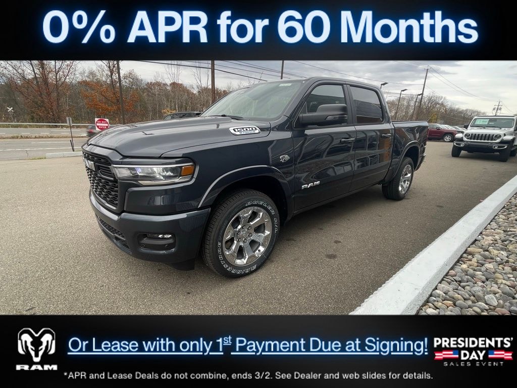 Forged Blue Metallic 2026 Ram 1500 Big Horn/Lone Star 4WD 8-Speed Automatic HEMI 5.7L V8 Multi Displacement VVT eTorque 115V Auxiliary Power Outlet, 115V Auxiliary Rear Power Outlet, 12" Touchscreen Display, 2nd Row in Floor Storage Bins, 3 Rear Seat Head Restraints, 33 Gallon Fuel Tank, 4 Way Front Headrests, 4-Wheel Disc Brakes, 400W Inverter, 48V Belt Starter Generator, 4G LTE Wi-Fi Hot Spot, 6 Speakers, 9 Amplified Speakers with Subwoofer, ABS brakes, Air Conditioning, Air Conditioning ATC with Dual Zone Control, Alloy wheels, AM/FM radio, Apple CarPlay, Apple CarPlay/Android Auto, Auto High-beam Headlights, Auto Power-Folding Mirrors, Auto-Dimming Exterior Driver Mirror, Auto-Dimming Rear-View Mirror, Big Horn Level 2 Equipment Group, Black Exterior Mirrors, Black Interior Accents, Black Premium Power Mirrors, Bluetooth, Body Color Door Handles, Body Color Fender Flares, Body Color Front Bumper, Body Color Rear Bumper with Step Pads, Body Color Tailgate Handle, Brake assist, Bucket Seats, Bumpers: chrome, Center Console Parts Module, Cloth Bucket Seats, Cluster 7.0" TFT Color Display, Compass, Configurable Drive Mode, Connected Travel and Traffic Services, Connectivity - US/Canada, Convex Wide-Angle Exterior Mirror Insert, Delay-off headlights, Deluxe Cloth Bucket Seats, Disassociated Touchscreen Display, Driver door bin, Dual front impact airbags, Dual front side impact airbags, Electronic Stability Control, Exterior Mirrors Courtesy Lamps, Exterior Mirrors with Heating Element, Exterior Mirrors with Supplemental Signals, Front anti-roll bar, Front Bucket Seats, Front Center Armrest w/Storage, Front fog lights, Front License Plate Bracket, Front reading lights, Front Seat Back Map Pockets, Front wheel independent suspension, Full Length Floor Console, Fully automatic headlights, Global Telematics Box Module, Glove Box Lamp, Google Android Auto, GPS Antenna Input, GPS Navigation, Grille Surround 1 Body Color Texture 1 Black, HD Radio, Heated door mirrors, Heated Front Seats, Heated Steering Wheel, Illuminated entry, Integrated Center Stack Radio, Integrated Voice Command with Bluetooth, Leather Wrapped Steering Wheel, LED Dome Lamp with on/Off Switch, LED Footwell Lighting, Low tire pressure warning, Manual Adjust 4-Way Driver Seat, Manual Adjust 4-Way Front Passenger Seat, Manual Folding Exterior Mirrors, Media Hub with 2 Charge Only USBs, MOPAR Front and Rear Rubber Floor Mats, Occupant sensing airbag, Outside temperature display, Overhead airbag, Overhead console, Overhead LED Lamps, Panic alarm, ParkView Rear Back-Up Camera, Passenger door bin, Passenger vanity mirror, Power 2-Way Driver Lumbar Adjust, Power Adjust 8-Way Driver Seat, Power Adjustable Pedals, Power door mirrors, Power steering, Power windows, Premium Overhead Console, Quick Order Package 27Z Big Horn, Radio data system, Radio: Uconnect 5 Navigation with 12.0" Display, Radio: Uconnect 5 W with 8.4" Display, RAM Grille Badge - Chrome, Rear 60/40 Folding Seat, Rear anti-roll bar, Rear Center Armrest, Rear Power Sliding Window, Rear step bumper, Rear Window Defroster, Remote keyless entry, Remote Tailgate Release, Security Alarm, SiriusXM Radio Service, SiriusXM with 360L, Speed control, Sport Appearance Package, Steering Wheel Mounted Audio Controls, Sun Visors with Illuminated Vanity Mirrors, Supplier Part Tracking (J-1), Tachometer, Telescoping steering wheel, Tilt steering wheel, Traction control, Trailer Brake Control, Trip computer, Universal Garage Door Opener, USB Host Flip, Variably intermittent wipers.