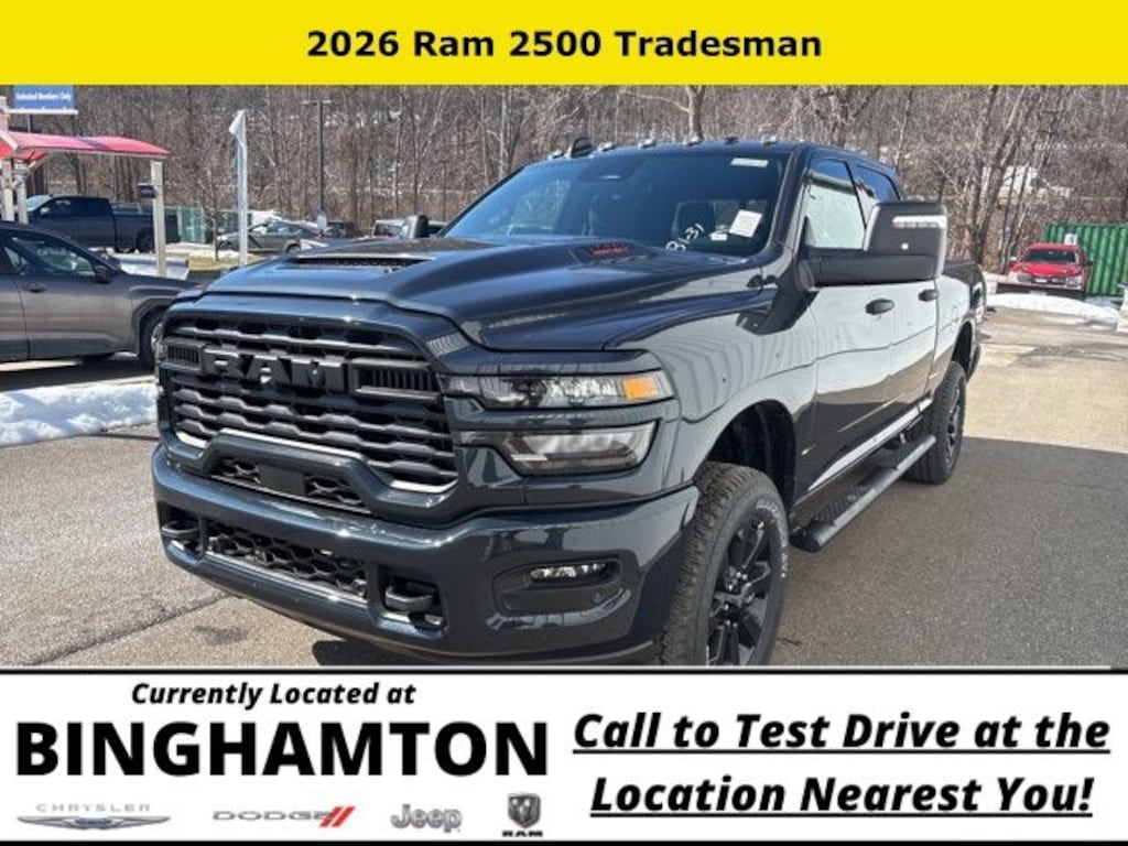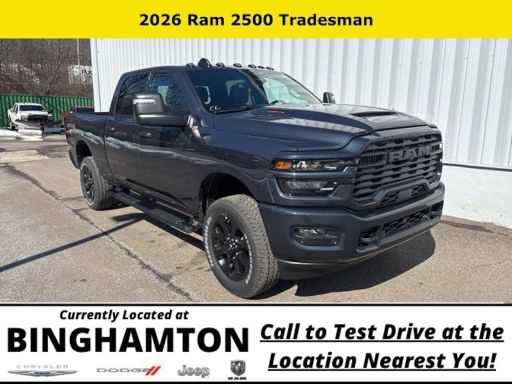 Forged Blue Metallic 2026 Ram 2500 Tradesman 4WD 8-Speed Automatic 6.4L V8 Save Time at the Dealership by Customizing your Deal Online!, 115-Volt Auxiliary Front Power Outlet, 12" Touchscreen Display, 2 Way Rear Headrest Seat, 3.73 Axle Ratio, 4 Way Front Headrests, 4-Wheel Disc Brakes, 40/20/40 Split Bench Seat, 400W Inverter, 4G LTE Wi-Fi Hot Spot, 6 Speakers, ABS brakes, Air Conditioning, Air Conditioning ATC with Dual Zone Control, Alexa Built-in, AM/FM radio: SiriusXM, Anti-Spin Differential Rear Axle, Apple CarPlay, Apple CarPlay/Android Auto, Auto Power-Folding Mirrors, Auto-Dimming Rear-View Mirror, Bed Convenience Group, Black Exterior Mirrors, Black Wheel Center Hub, Body Color Grille-Surround, Brake assist, Carpet Floor Covering, Clearance Lamps, Cloth 40/20/40 Bench Seat, Compass, Connected Travel and Traffic Services, Connectivity - US/Canada, Delay-off headlights, Disassociated Touchscreen Display, Driver door bin, Dual front impact airbags, Dual front side impact airbags, Electronic Stability Control, Emergency Vehicle Alert System (EVAS), Exterior 115V AC Outlet, Exterior Mirrors Courtesy Lamps, Exterior Mirrors with Heating Element, Exterior Mirrors with Supplemental Signals, For Details, Visit DriveUconnect.com, For More Info, Call 800-643-2112, Forward and Reverse Utility Lights, Front and Rear Floor Mats, Front anti-roll bar, Front Armrest with Cupholders, Front Center Armrest w/Storage, Front fog lights, Front License Plate Bracket, Front reading lights, Fully automatic headlights, Global Telematics Box Module, Google Android Auto, GPS Antenna Input, GPS Navigation, HD Radio, Illuminated entry, Integrated Voice Command with Bluetooth, LED Bed Lighting, Low tire pressure warning, Manual Adjust 4-Way Driver Seat, Manual Adjust 4-Way Front Passenger Seat, Manual Folding Exterior Mirrors, Manual Telescoping Mirrors, Manufacturer's Statement of Origin, Mirror Running Lights, Mopar Black Tubular Side Steps, MOPAR Spray in Bedliner, Occupant sensing airbag, Off-Road Info Pages, Outside temperature display, Overhead airbag, Overhead console, Painted Front Bumper, Painted Rear Bumper, Panic alarm, ParkSense Front/Rear Park Assist System, ParkView Rear Back-Up Camera, Passenger door bin, Passenger vanity mirror, Power Adjust Mirrors, Power Heated Folding Telescopic Mirrors, Power steering, Power Telescoping Mirrors, Power windows, Power-Adjustable Convex Aux Mirrors, Quick Order Package 2UC Black Express, Radio data system, Radio: Uconnect 5 Navigation with 12.0" Display, Radio: Uconnect 5 with 8.4" Display, Rear anti-roll bar, Rear Backup Alarm, Rear Folding Seat, Rear Power Sliding Window, Rear step bumper, Rear Wheelhouse Liners, Rear window defroster, Remote keyless entry, Remote USB Port - Charge Only, Selectable Tire Fill Alert, SiriusXM Radio Service, SiriusXM with 360L, Speed control, Sport Performance Hood, Storage Tray, Tachometer, Tilt steering wheel, Tinted Acoustic Windshield Glass, Traction control, Tradesman Level 1 Equipment Group, Trailer Tow Pages, Variably intermittent wipers, Voltmeter, Wheels: 17" x 7.5" Black Steel Styled, Wheels: 20" x 8.0" Black Painted Aluminum.