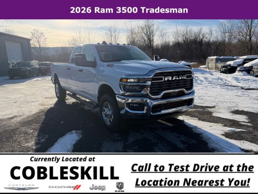 Bright White Clearcoat 2026 Ram 3500 Tradesman 4WD 8-Speed Automatic 6.7L I6 Save Time at the Dealership by Customizing your Deal Online!, 115-Volt Auxiliary Front Power Outlet, 12" Touchscreen Display, 2 Way Rear Headrest Seat, 4 Way Front Headrests, 4-Wheel Disc Brakes, 40/20/40 Split Bench Seat, 400W Inverter, 4G LTE Wi-Fi Hot Spot, 5th Wheel/Gooseneck Towing Prep Group, 6 Speakers, ABS brakes, Air Conditioning, Air Conditioning ATC with Dual Zone Control, Alexa Built-in, AM/FM radio: SiriusXM, Apple CarPlay, Apple CarPlay/Android Auto, Auto-Dimming Rear-View Mirror, Bed Convenience Group, Black Exterior Mirrors, Black Wheel Center Hub, Brake assist, Bright Front Bumper, Bright Rear Bumper, Bright Wheel Skins, Carpet Floor Covering, Center Hub, Chrome Grille Surround, Clearance Lamps, Cloth 40/20/40 Bench Seat, Compass, Connected Travel and Traffic Services, Connectivity - US/Canada, Convenience Group, Delay-off headlights, Disassociated Touchscreen Display, Driver door bin, Dual front impact airbags, Dual front side impact airbags, Electronic Stability Control, Emergency Vehicle Alert System (EVAS), Exterior 115V AC Outlet, Exterior Mirrors Courtesy Lamps, Exterior Mirrors with Heating Element, Exterior Mirrors with Supplemental Signals, For Details Visit DriveUconnect.com, For More Info, Call 800-643-2112, Front and Rear Floor Mats, Front anti-roll bar, Front Armrest with Cupholders, Front Center Armrest w/Storage, Front fog lights, Front License Plate Bracket, Front reading lights, Fully automatic headlights, Global Telematics Box Module, Google Android Auto, GPS Antenna Input, GPS Navigation, HD Radio, Illuminated entry, Integrated Voice Command with Bluetooth, LED Bed Lighting, Low tire pressure warning, Manual Adjust 4-Way Driver Seat, Manual Adjust 4-Way Front Passenger Seat, Manual Folding Exterior Mirrors, Manual Telescoping Mirrors, Manufacturer's Statement of Origin, Matte Black Mesh with Chrome Grille, Mirror Running Lights, Mopar Black Tubular Side Steps, MOPAR Spray in Bedliner, MyFlexCare Service Diesel, Occupant sensing airbag, Off-Road Information Pages, Outside temperature display, Overhead airbag, Overhead console, Panic alarm, ParkSense Front/Rear Park Assist System, ParkView Rear Back-Up Camera, Passenger door bin, Passenger vanity mirror, Power Adjust Mirrors, Power Heat Fold Telescopic Mirrors, Power steering, Power windows, Power-Adjustable Convex Aux Mirrors, Quick Order Package 24A Tradesman, Radio data system, Radio: Uconnect 5 Navigation with 12.0" Display, Radio: Uconnect 5 with 8.4" Display, Rear Backup Alarm, Rear Folding Seat, Rear Power Sliding Window, Rear step bumper, Rear Wheelhouse Liners, Rear window defroster, Remote keyless entry, Remote USB Port - Charge Only, Selectable Tire Fill Alert, SiriusXM Radio Service, SiriusXM with 360L, Speed control, Storage Tray, Tachometer, Tilt steering wheel, Tinted Acoustic Windshield Glass, Traction control, Tradesman Level 2A Equipment Group, Trailer Tow Pages, Variably intermittent wipers, Voltmeter, Wheels: 18" x 8.0" Black Painted Steel, Wheels: 18" x 8.0" Steel Chrome Clad.