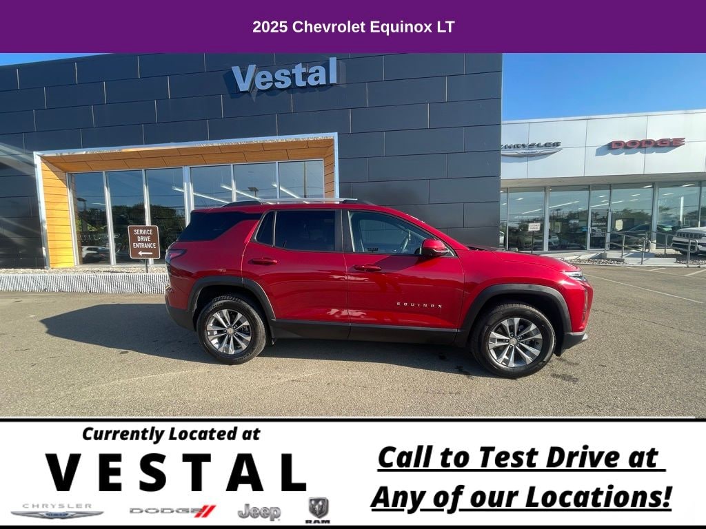 AWD, 2-Way Power Driver Lumbar Control Seat Adjuster, 3.47 Final Drive Axle Ratio, 4-Wheel Disc Brakes, 6 Speakers, ABS brakes, Air Conditioning, Alloy wheels, AM/FM radio: SiriusXM, Auto High-beam Headlights, AutoSense Hands-Free Power Programmable Liftgate, Brake assist, Bumpers: body-color, Cabin Humidity & Windshield Sensor, Cloth Seat Trim, Compass, Convenience Package II, Delay-off headlights, Driver 6-Way Manual Seat Adjuster, Driver 8-Way Power Seat Adjuster, Driver door bin, Driver vanity mirror, Dual front impact airbags, Dual front side impact airbags, Dual-Zone Automatic Climate Control, Electronic Stability Control, Emergency communication system: OnStar and Chevrolet connected services capable, Evotex Seat Trim, Four wheel independent suspension, Front anti-roll bar, Front Bucket Seats, Front Center Armrest, Front Fog Lamps, Front Passenger 4-Way Manual Seat Adjuster, Front reading lights, Fully automatic headlights, HD Surround Vision, Heated door mirrors, Heated Driver & Front Passenger Seats, Heated front seats, Heated steering wheel, Heated Wiper Park, Illuminated entry, Intermittent Front Rain-Sensing Wipers, Low tire pressure warning, Navigation System, Occupant sensing airbag, Outside temperature display, Overhead airbag, Overhead console, Overhead Sunglass Storage, Panic alarm, Passenger door bin, Passenger vanity mirror, Power door mirrors, Power steering, Power windows, Preferred Equipment Group 2LT, Premium audio system: Chevrolet Infotainment 3, Programmable Universal Home Remote, Radio data system, Radio: 11.3" Diagonal Advanced Color LCD Display, Rear anti-roll bar, Rear Camera Mirror Washer, Rear Pedestrian Alert, Rear reading lights, Rear seat center armrest, Rear window defroster, Rear window wiper, Remote keyless entry, Roof Rails, Safety & Technology Package, Security system, SiriusXM, Speed control, Speed-sensing steering, Split folding rear seat, Spoiler, Steering wheel mounted audio controls, Tachometer, Telescoping steering wheel, Tilt steering wheel, Traction control, Traffic Sign Recognition, Trip computer, Universal Home Remote Non-Functional, Variably intermittent wipers, Wheels: 17" Grazen Metallic Machined-Face Aluminum, Wireless Charging for Devices, AWD. Odometer is 3122 miles below market average! 2025 Chevrolet Equinox 4D Sport Utility LT Radiant Red Tintcoat AWD 8-Speed Automatic 1.5L DOHC