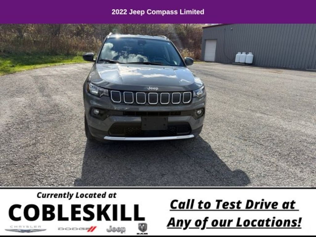 Save Time at the Dealership by Customizing your Deal Online!, 4WD, 10.1" Touchscreen Display, 3.73 Axle Ratio, 4-Wheel Disc Brakes, 6 Speakers, ABS brakes, Air Conditioning, Alloy wheels, AM/FM radio: SiriusXM, Anti-whiplash front head restraints, Auto High-beam Headlights, Auto-dimming Rear-View mirror, Automatic temperature control, Brake assist, Bumpers: body-color, Compass, Delay-off headlights, Disassociated Touchscreen Display, Driver door bin, Driver vanity mirror, Dual front impact airbags, Dual front side impact airbags, Electronic Stability Control, Emergency communication system: SiriusXM Guardian, Four wheel independent suspension, Front anti-roll bar, Front Bucket Seats, Front Center Armrest w/Storage, Front dual zone A/C, Front fog lights, Front License Plate Bracket, Front reading lights, Fully automatic headlights, Global Telematics Box Module (TBM), Gloss Black Exterior Mirrors, Heated door mirrors, Heated front seats, Heated steering wheel, Illuminated entry, Knee airbag, Leather Shift Knob, Leather Trimmed Bucket Seats, Low tire pressure warning, Occupant sensing airbag, Outside temperature display, Overhead airbag, Overhead console, Panic alarm, ParkView Rear Back-Up Camera, Passenger door bin, Passenger vanity mirror, Power door mirrors, Power driver seat, Power steering, Power windows, Quick Order Package 2GG, Radio: Uconnect 5 w/10.1" Display, Rain sensing wipers, Rear anti-roll bar, Rear seat center armrest, Rear window defroster, Rear window wiper, Remote keyless entry, Roof rack: rails only, Security system, Speed control, Split folding rear seat, Spoiler, Steering wheel mounted audio controls, Tachometer, Telescoping steering wheel, Tilt steering wheel, Traction control, Trip computer, Turn signal indicator mirrors, Variably intermittent wipers, Wheels: 18" x 7" Painted Diamond Cut Aluminum, 4WD. 2022 Jeep Compass 4D Sport Utility Limited 4WD 9-Speed 948TE Automatic 2.4L I4 Sting-Gray Clearcoat