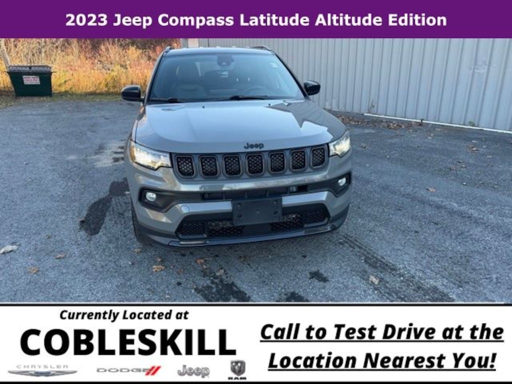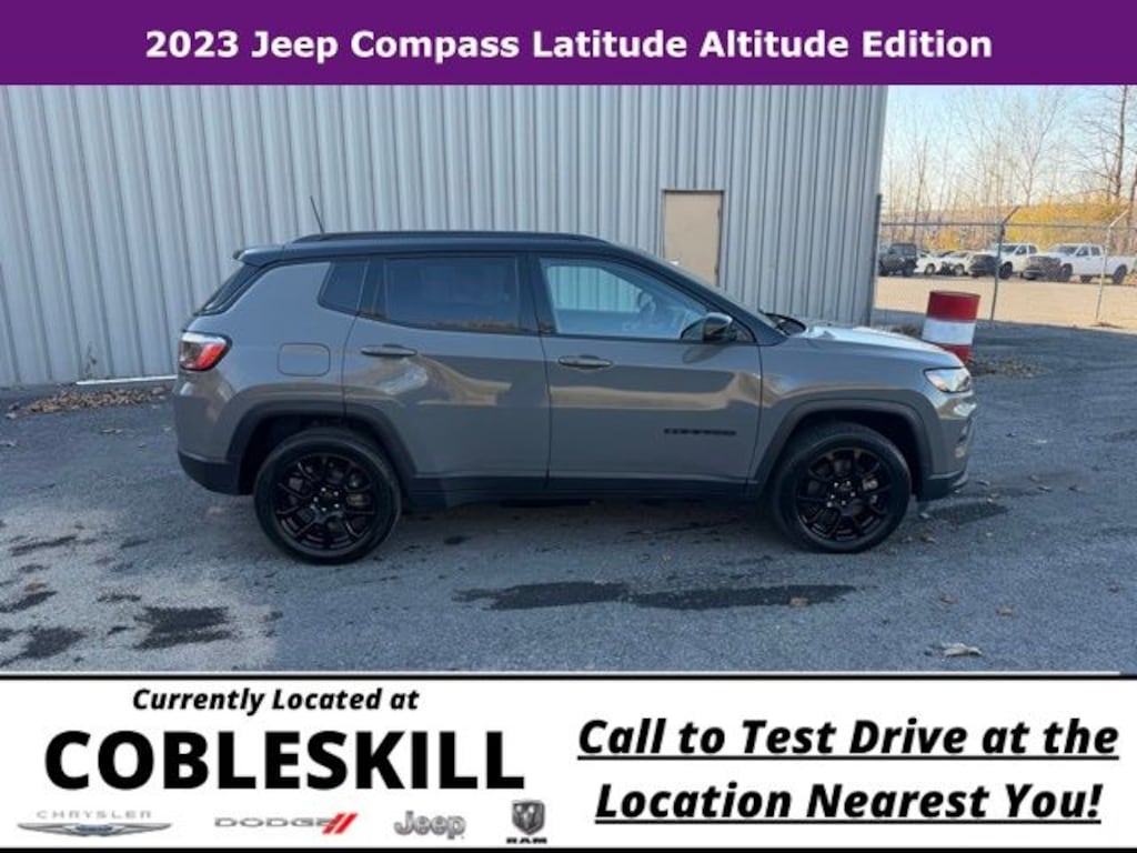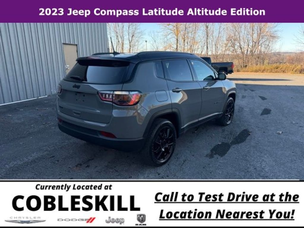 Save Time at the Dealership by Customizing your Deal Online!, 4WD, 17" x 7.0" Aluminum Wheels, 3.73 Final Drive Ratio, 4-Wheel Disc Brakes, 6 Speakers, ABS brakes, Air Conditioning, Alloy wheels, Altitude Special Edition, AM/FM radio: SiriusXM, Auto High-beam Headlights, Black Day Light Opening Moldings, Black Roof, Brake assist, Bumpers: body-color, Compass, Delay-off headlights, Driver door bin, Driver vanity mirror, Dual front impact airbags, Dual front side impact airbags, Electronic Stability Control, Four wheel independent suspension, Front anti-roll bar, Front Bucket Seats, Front Center Armrest w/Storage, Front fog lights, Front License Plate Bracket, Front reading lights, Fully automatic headlights, Gloss Black Badges, Gloss Black Grille & Crosshairs, Heated door mirrors, Illuminated entry, Knee airbag, Leather Shift Knob, Light Tungsten Interior Accent Stitching, Low tire pressure warning, Occupant sensing airbag, Outside temperature display, Overhead airbag, Overhead console, Panic alarm, ParkView Rear Back-Up Camera, Passenger door bin, Passenger vanity mirror, Piano Black Interior Accents, Power door mirrors, Power steering, Power windows, Premium Cloth/Vinyl Bucket Seats, Quick Order Package 29B Altitude, Radio: Uconnect 5 w/10.1" Display, Rear anti-roll bar, Rear seat center armrest, Rear window defroster, Rear window wiper, Remote keyless entry, Security system, Speed control, Split folding rear seat, Spoiler, Steering wheel mounted audio controls, Tachometer, Telescoping steering wheel, Tilt steering wheel, Traction control, Trip computer, Variably intermittent wipers, Wheels: 18" x 7" Gloss Black Painted Aluminum, 4WD. 2023 Jeep Compass 4D Sport Utility Altitude 4WD 8-Speed Automatic 2.0L I4 DOHC Sting-Gray Clearcoat